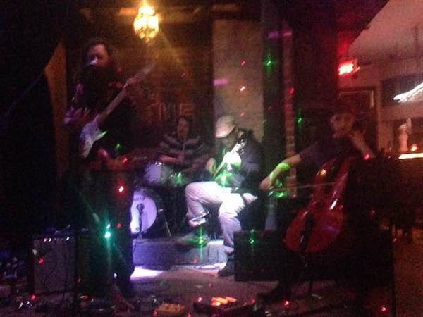As I understand, last night’s performance was meant to be held at l’Escogriffe, but since it is currently under renovation, the event was moved to Le Cactus, a small showroom next door . Great little spot. Supposedly doubling as a dance studio, the venue’s side wall is lined entirely with full-sized mirrors, perfectly suitable for the disco ball and lasers bouncing all over the room. Unfortunately, not nearly enough people made it to last night’s performance, but this does not at all take from the music. The bands were great.
